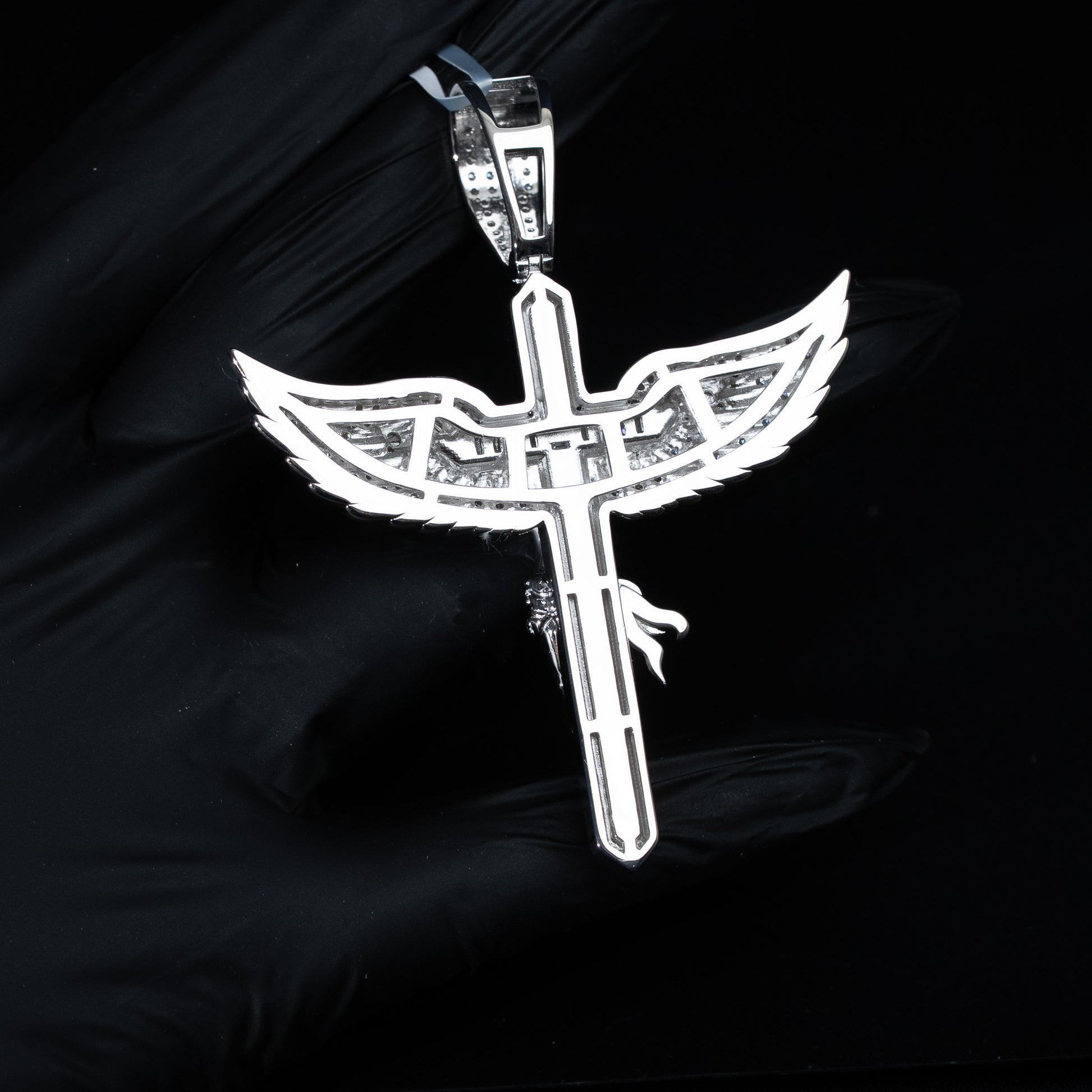Moissanite Jesus Crucifix Cross Angel Wings Pendant 925 Sterling Silver