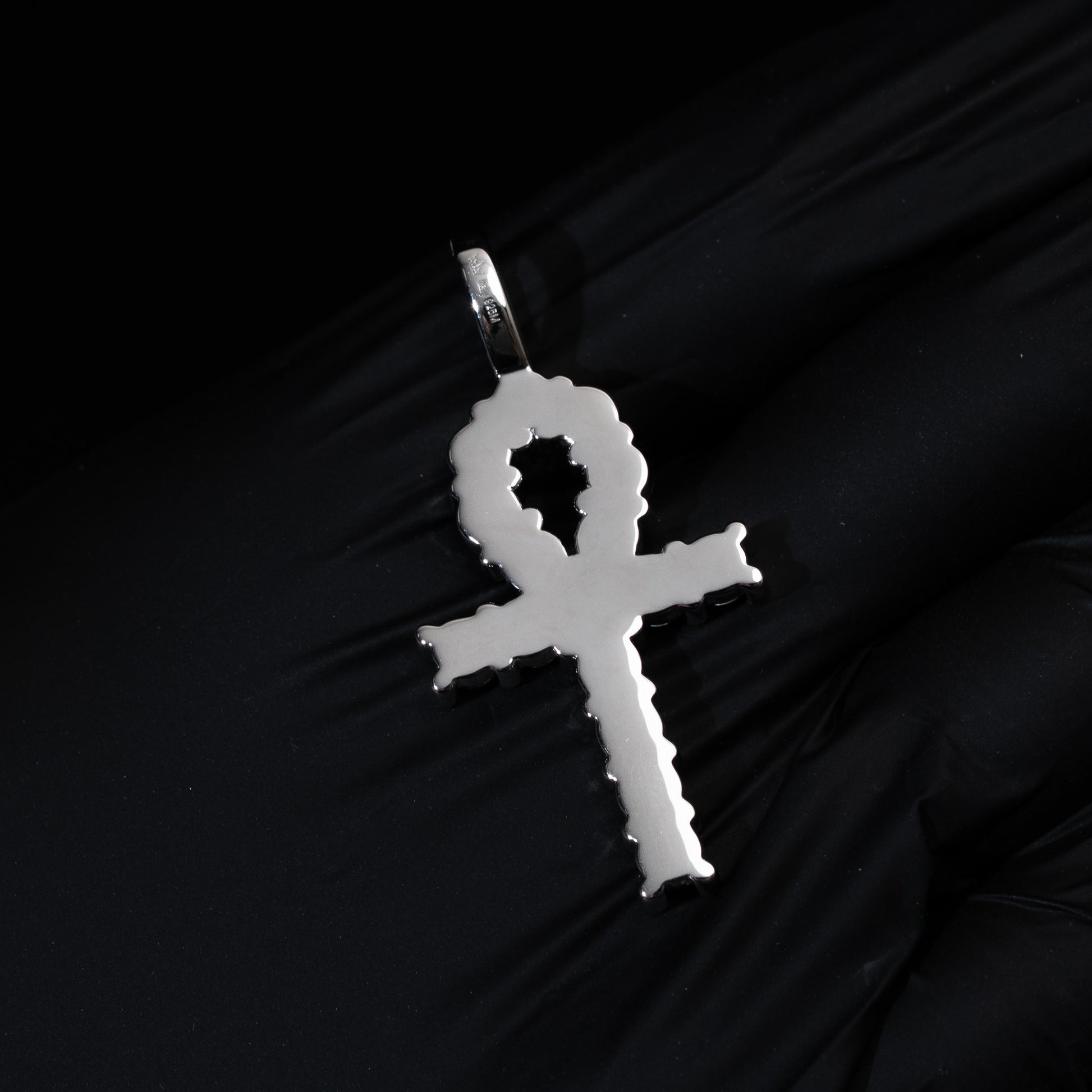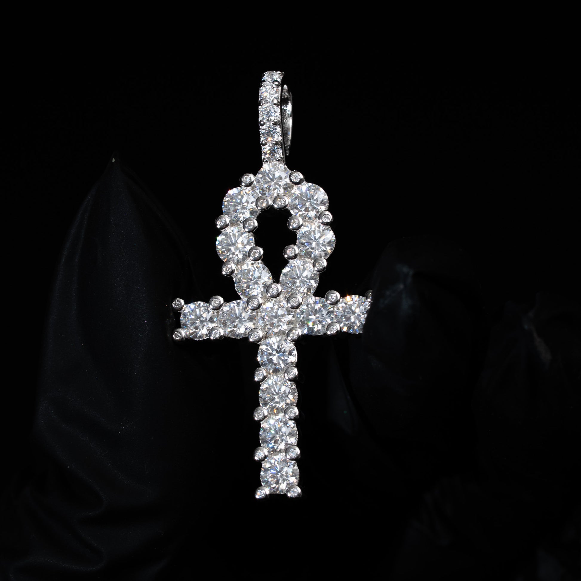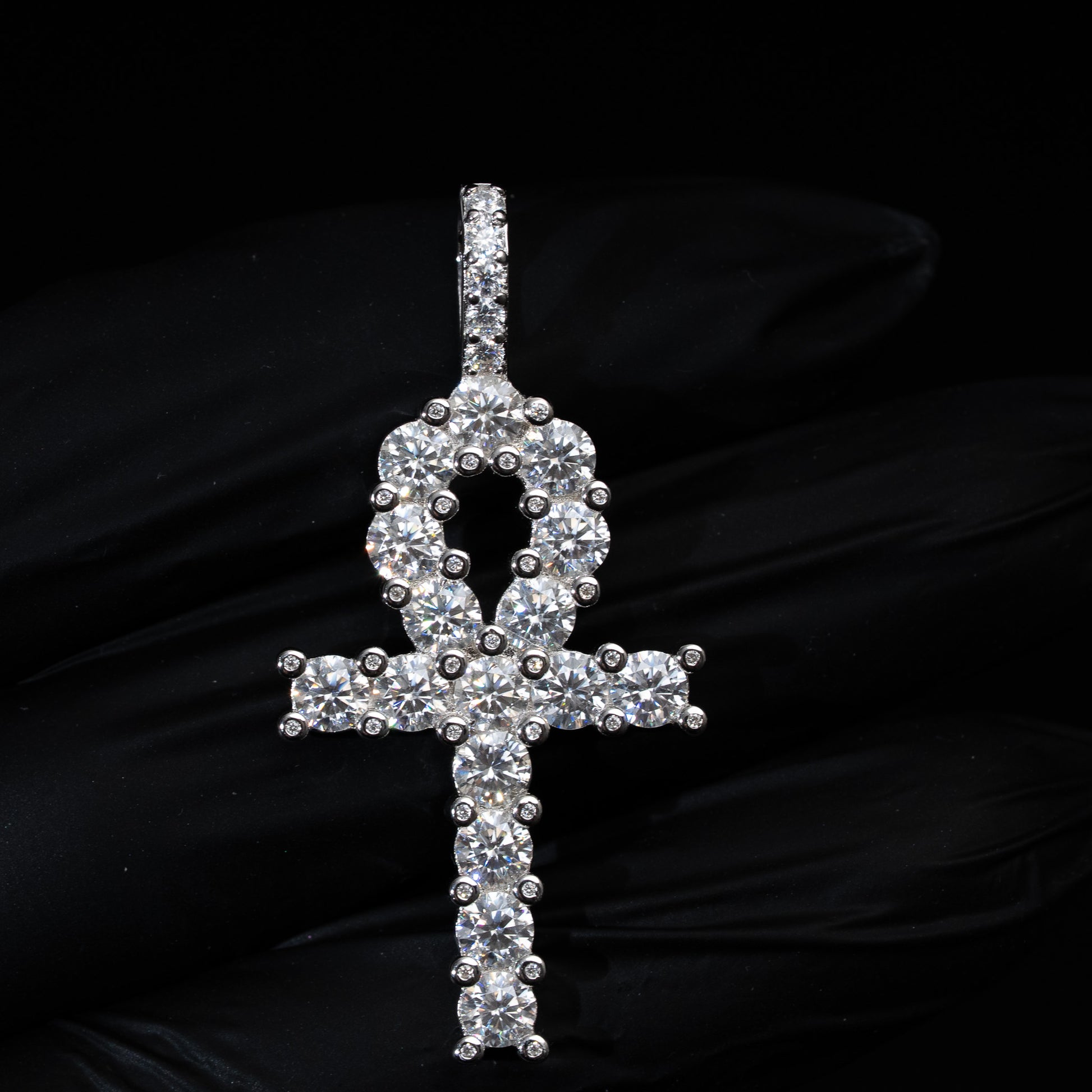 - Design: Tennis-style iced ankh cross
