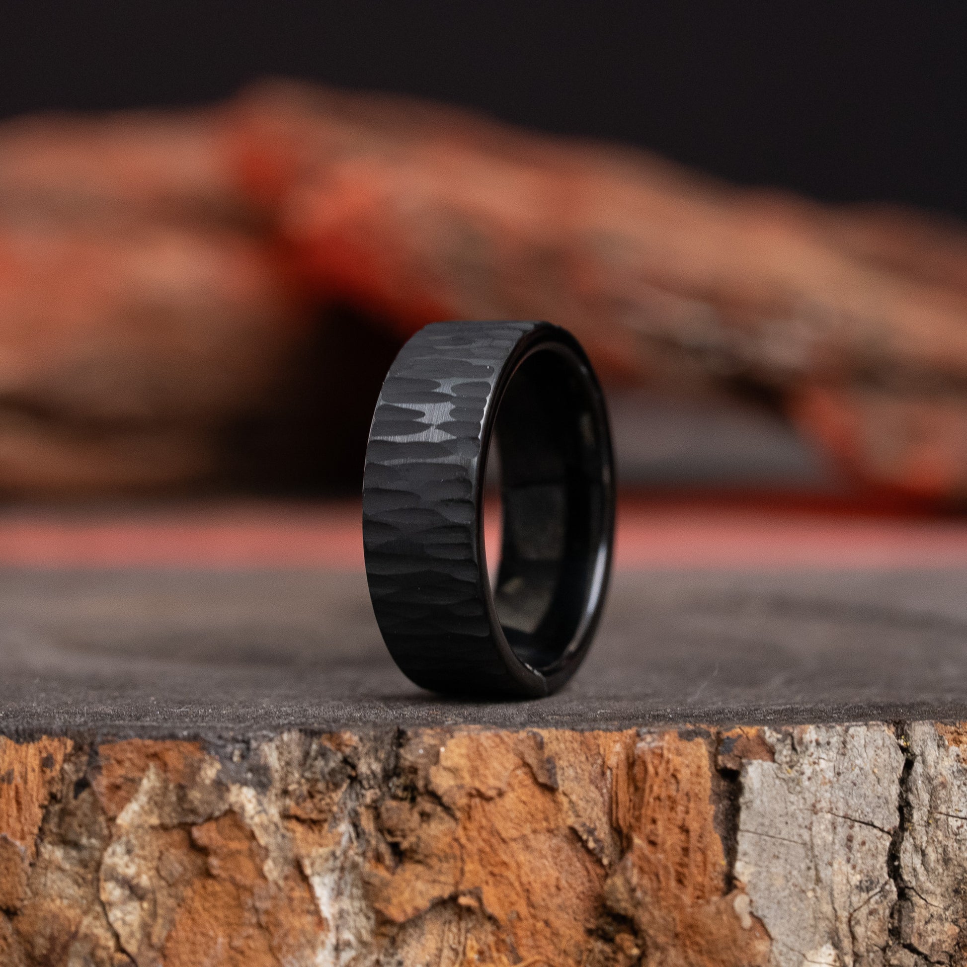 Black Hammered Solid Tungsten Carbide Ring Flat Comfort Fit