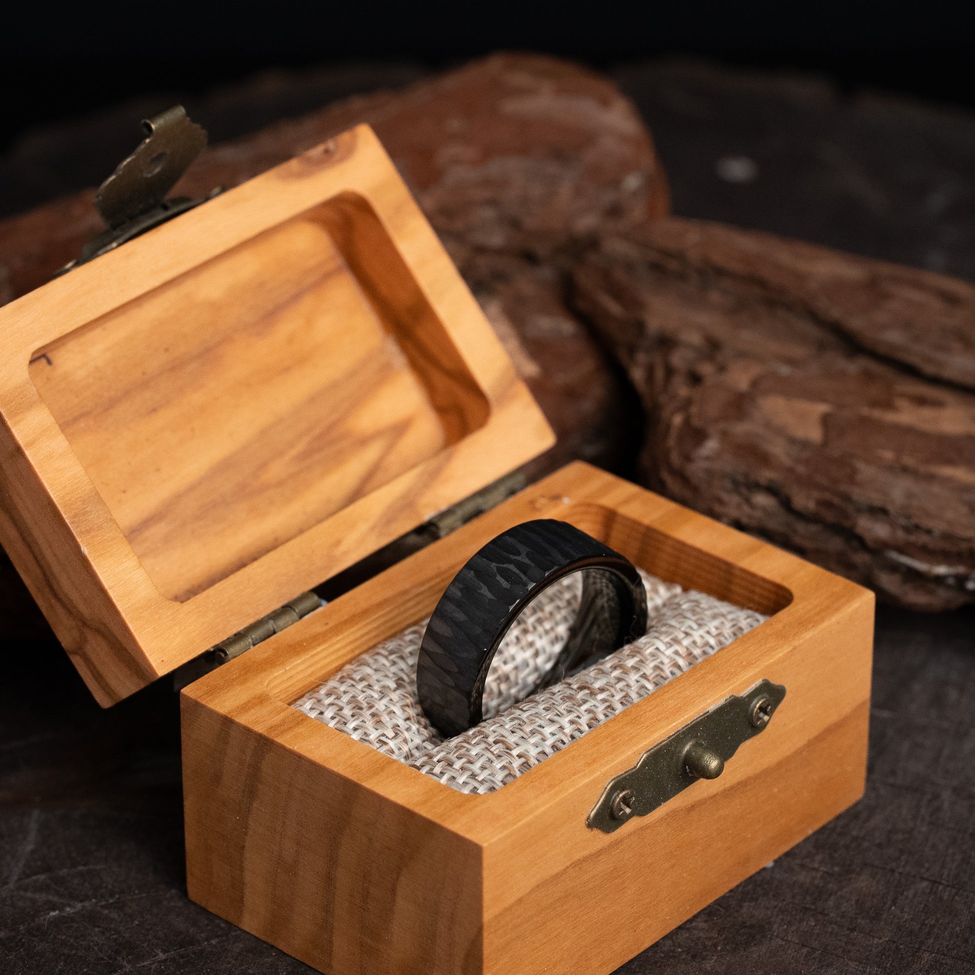 Ideal as a wedding band or everyday ring, it’s scratch-resistant, low maintenance, and comes with a premium wooden ring box.