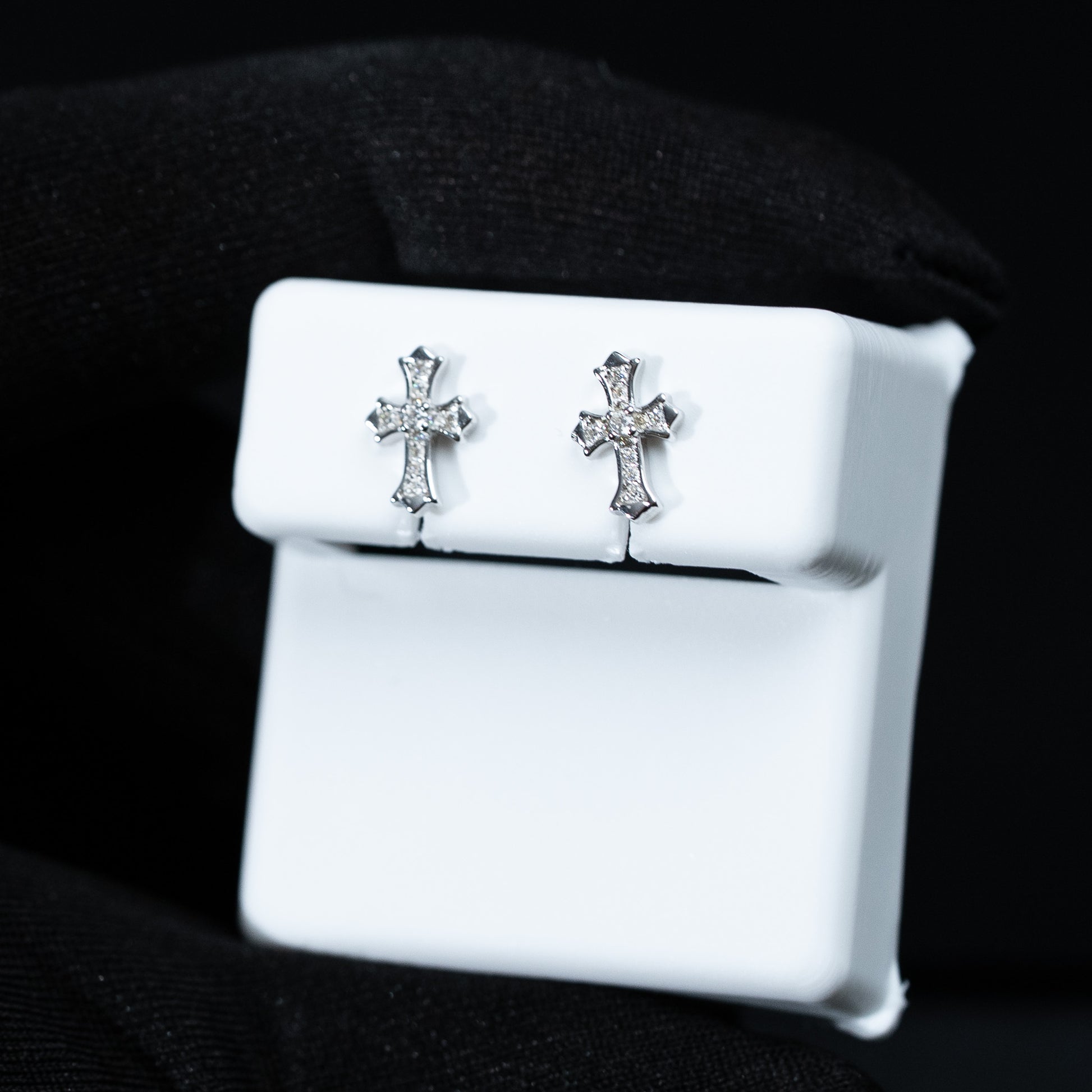 These Small Cross Stud Earrings offer a minimalist yet meaningful design, featuring 0.10 carat of VVS1 D color moissanite set in 925 sterling silver. With their compact size and subtle sparkle, they’re a perfect everyday religious accessory for men, women, or unisex wear.