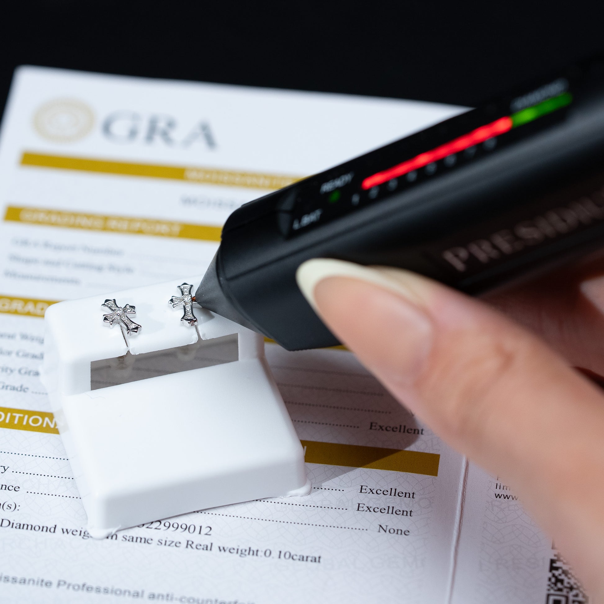 - Total Carat Weight: 0.10 carat moissanite (VVS1, D color)