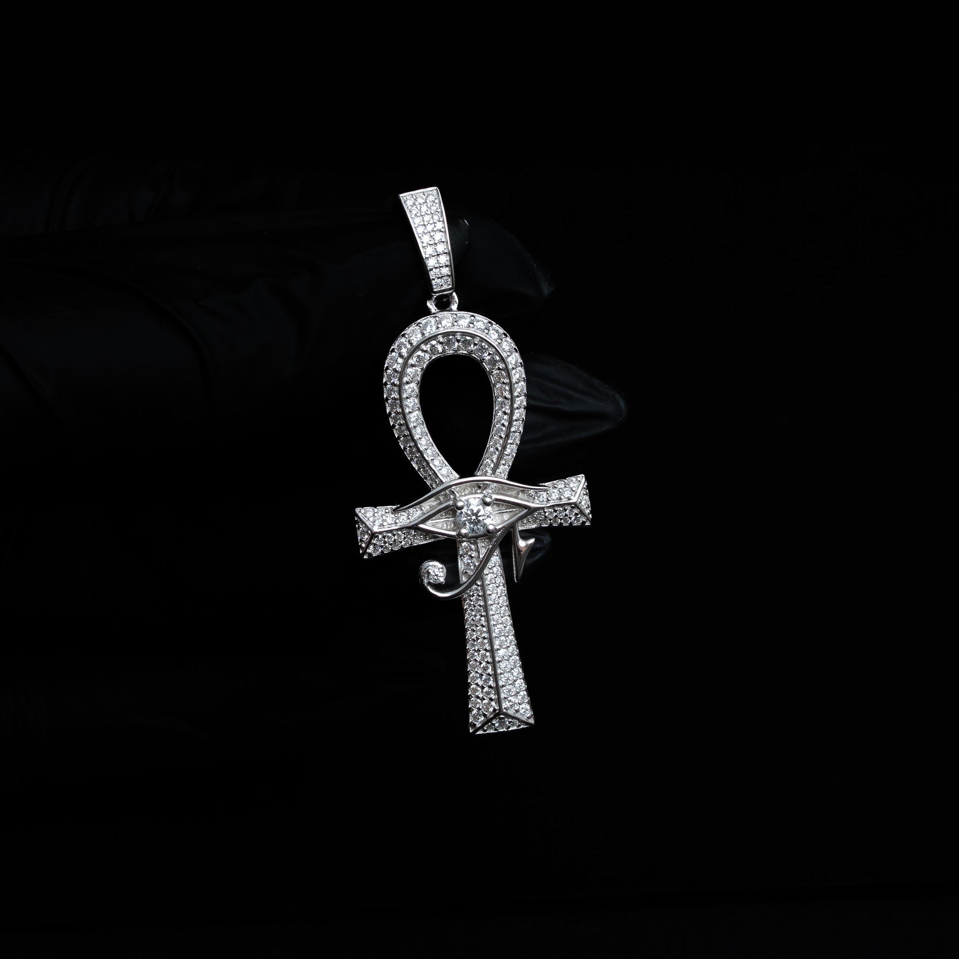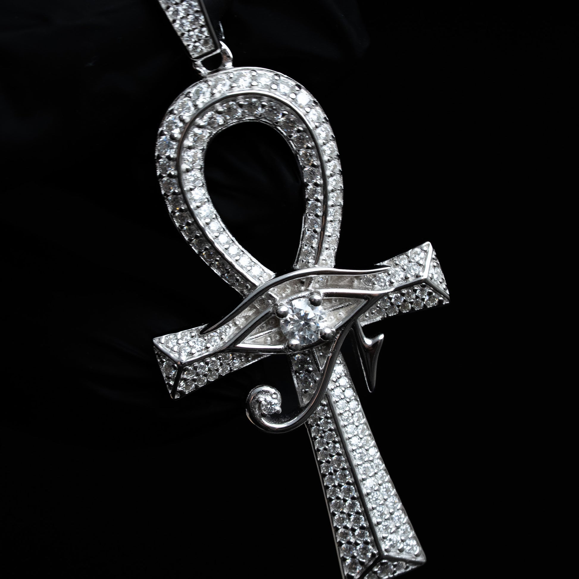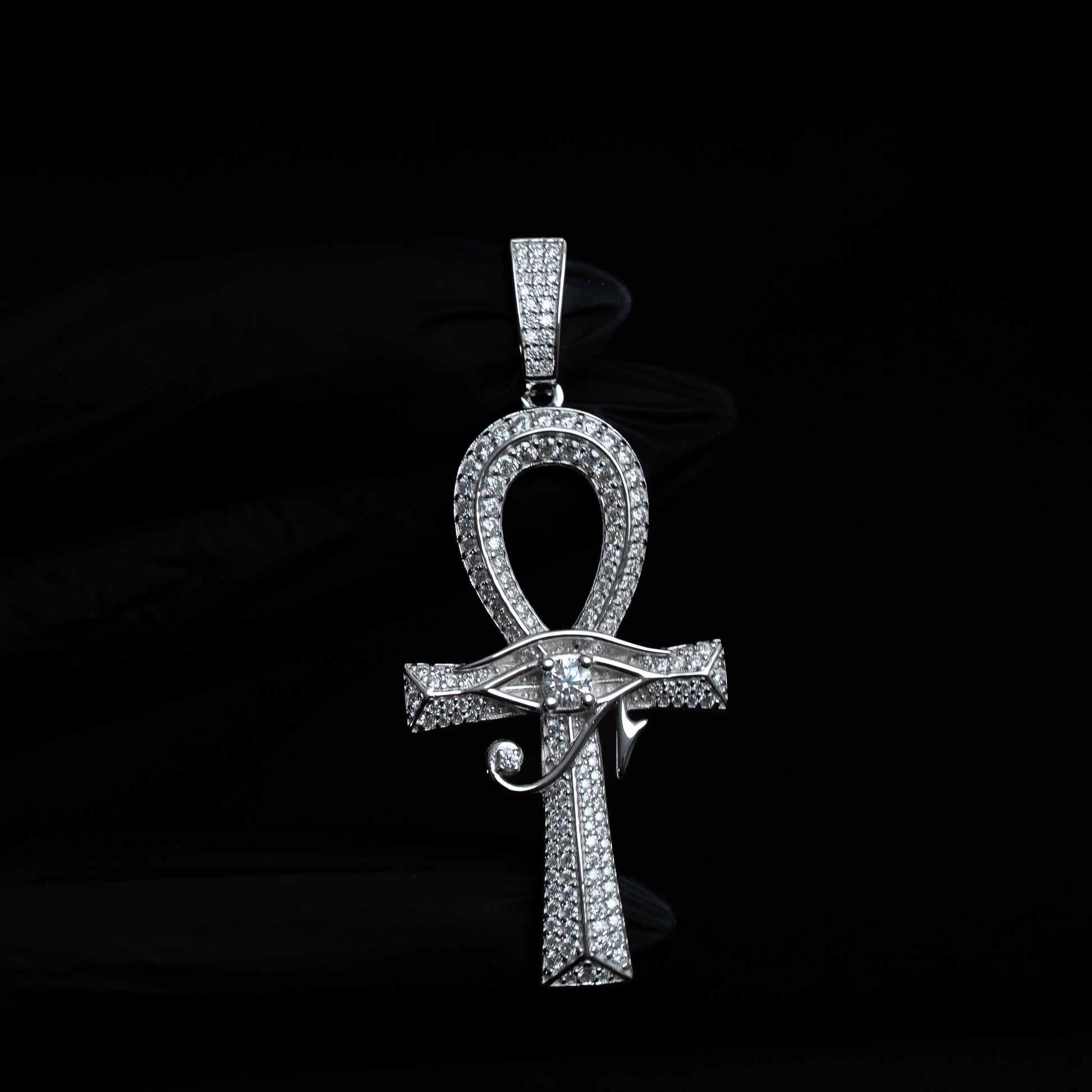 Moissanite Evil Eye Ankh Cross Pendant 925 Sterling Silver