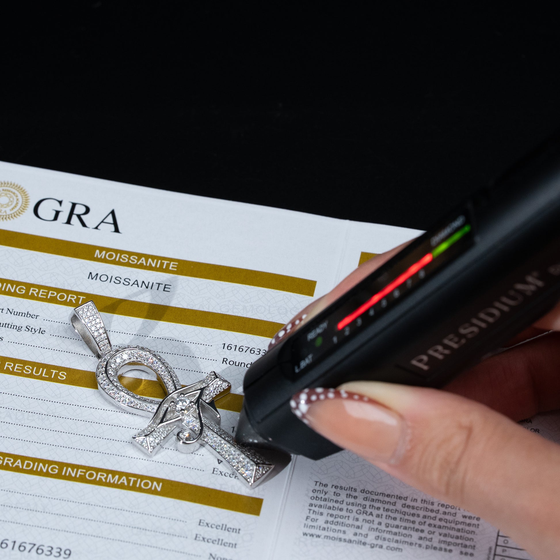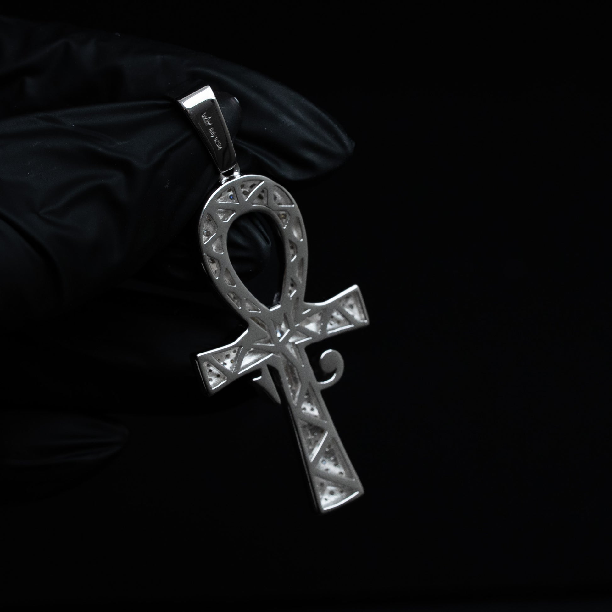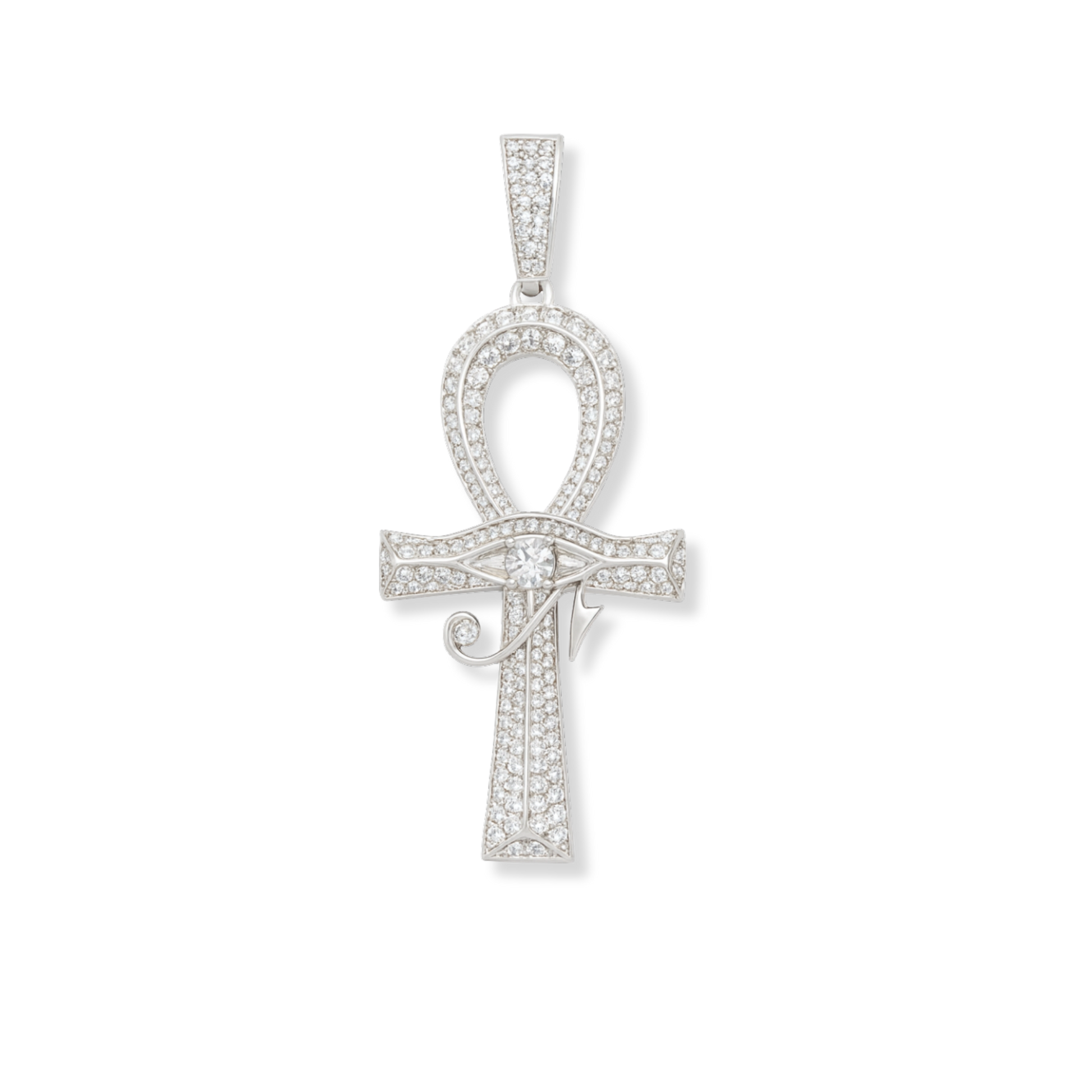 Moissanite Evil Eye Ankh Cross Pendant 925 Sterling Silver