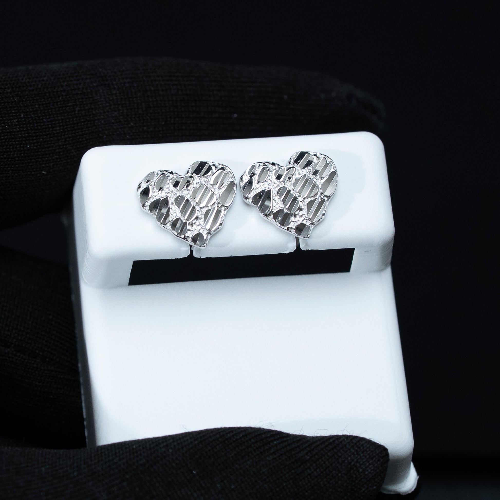 Heart Shaped Nugget Earrings – 925 Sterling Silver Screw Back