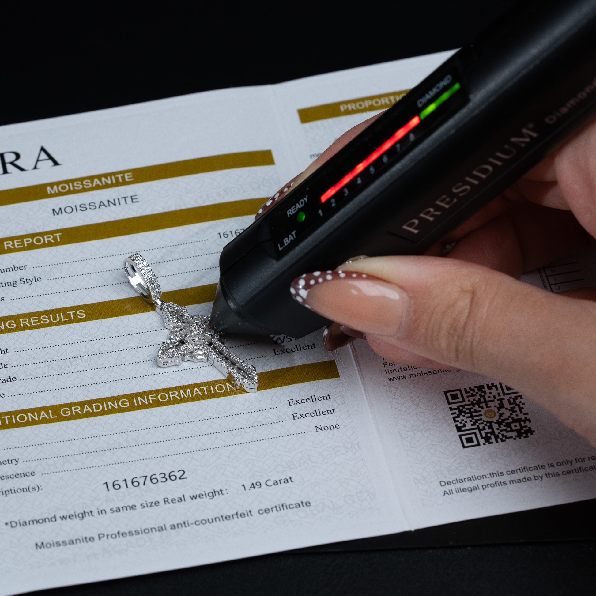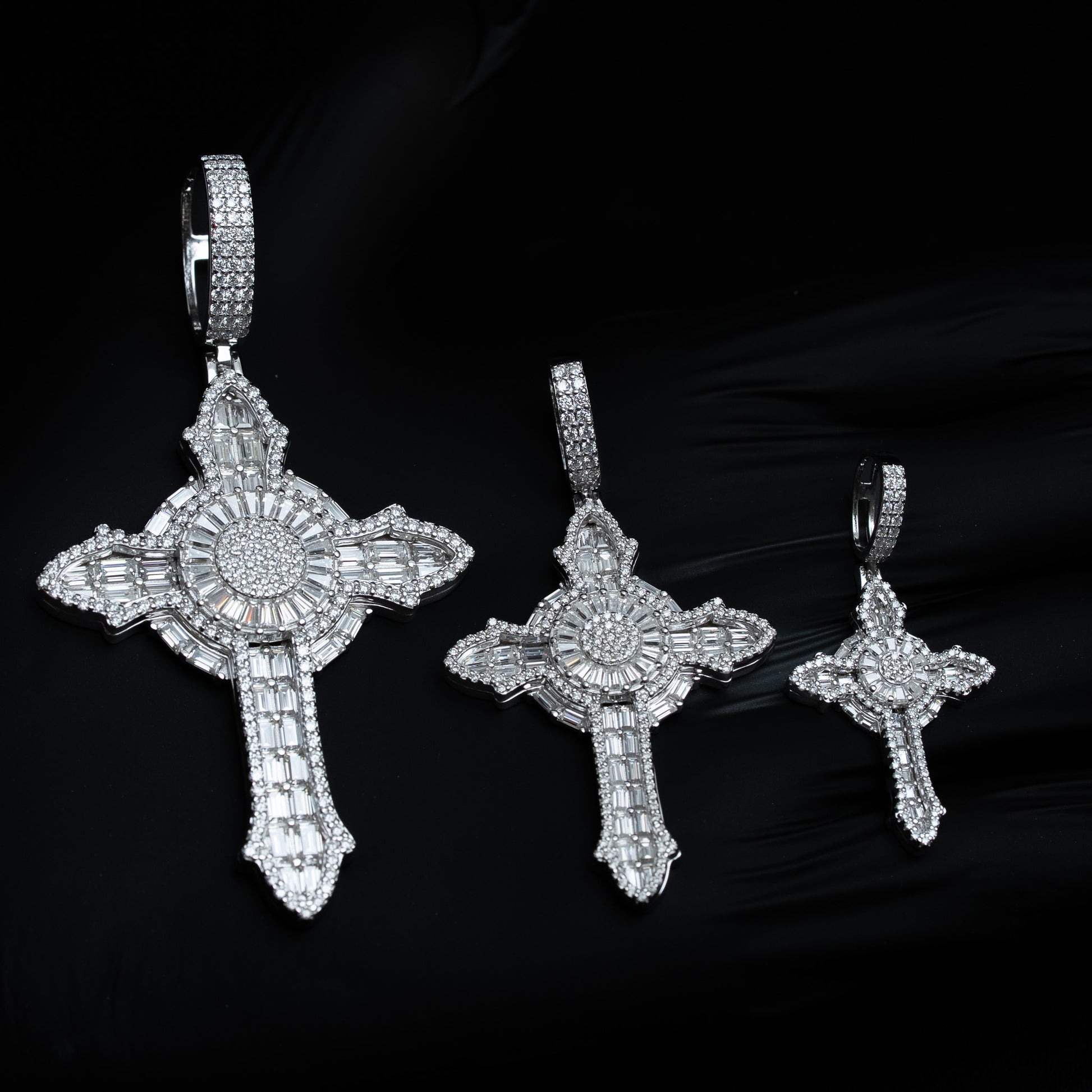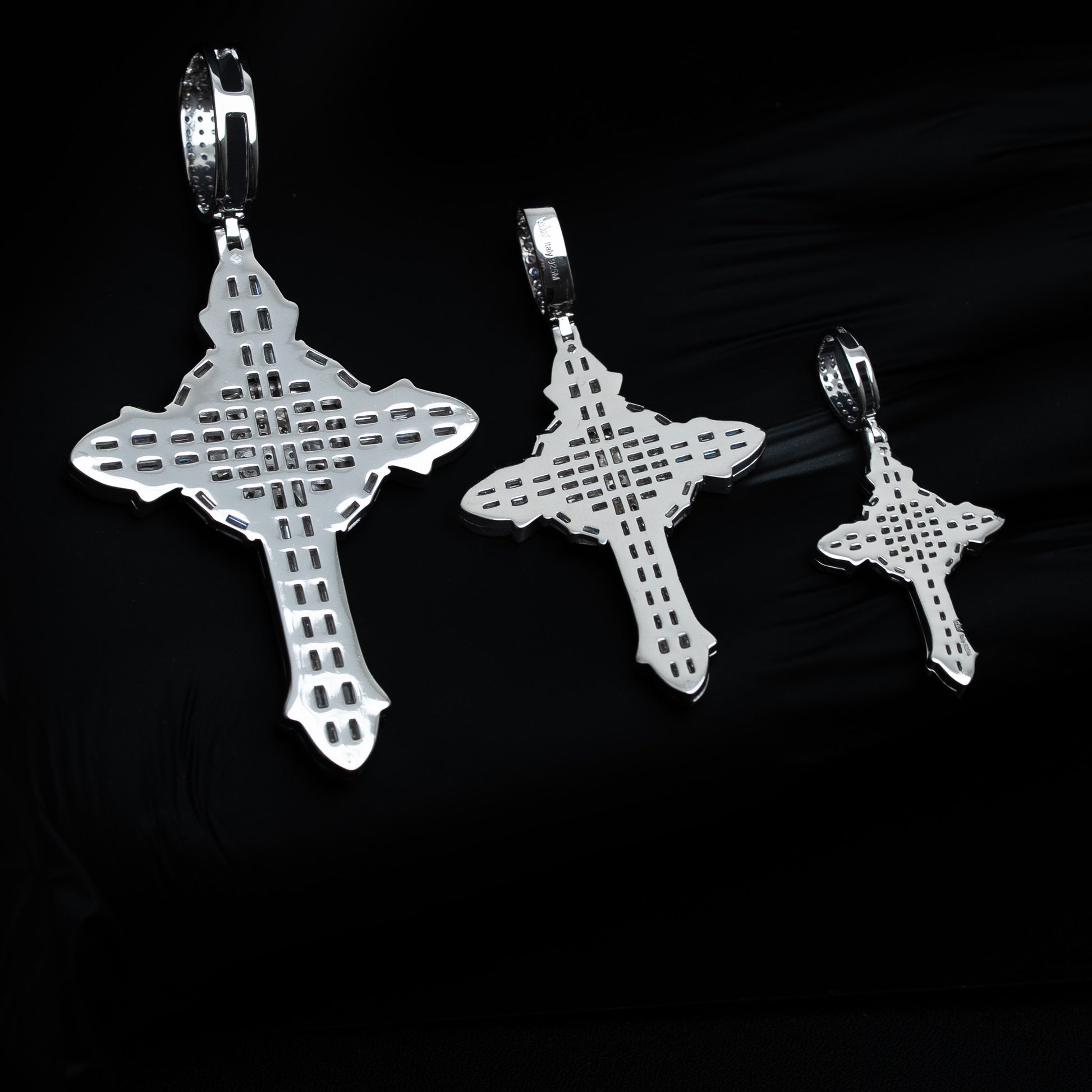 Moissanite Baguette Iced Cross Pendant 925 Sterling Silver