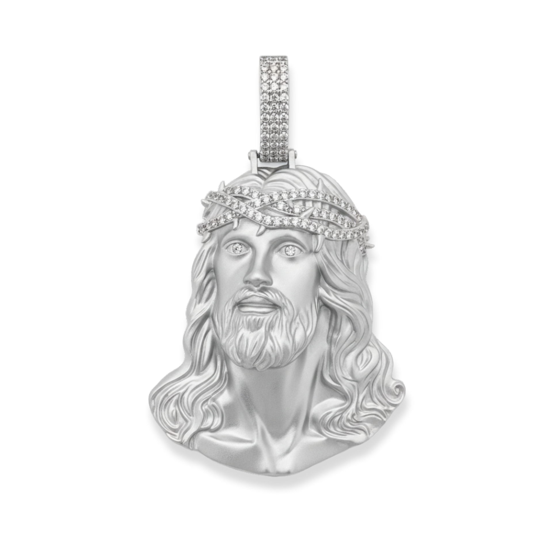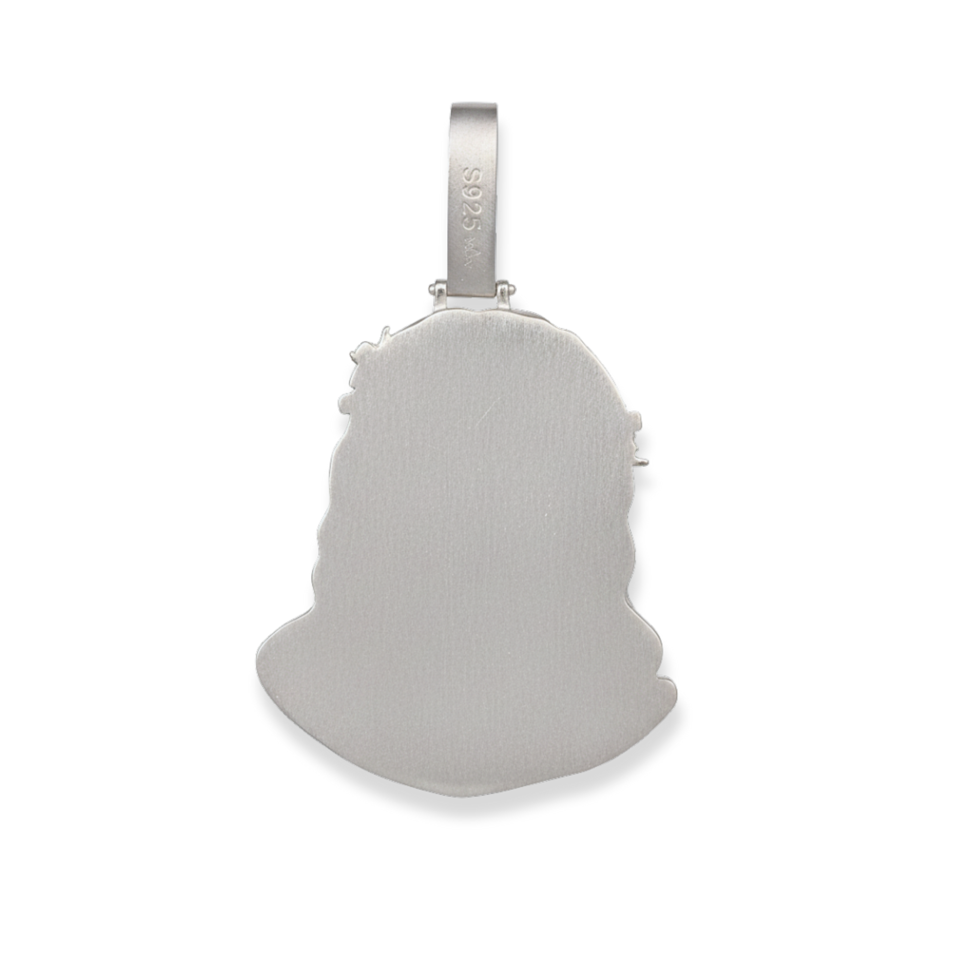 Moissanite Jesus Head Piece Pendant - Solid 925 Sterling Silver Matte Sandblasted Finish