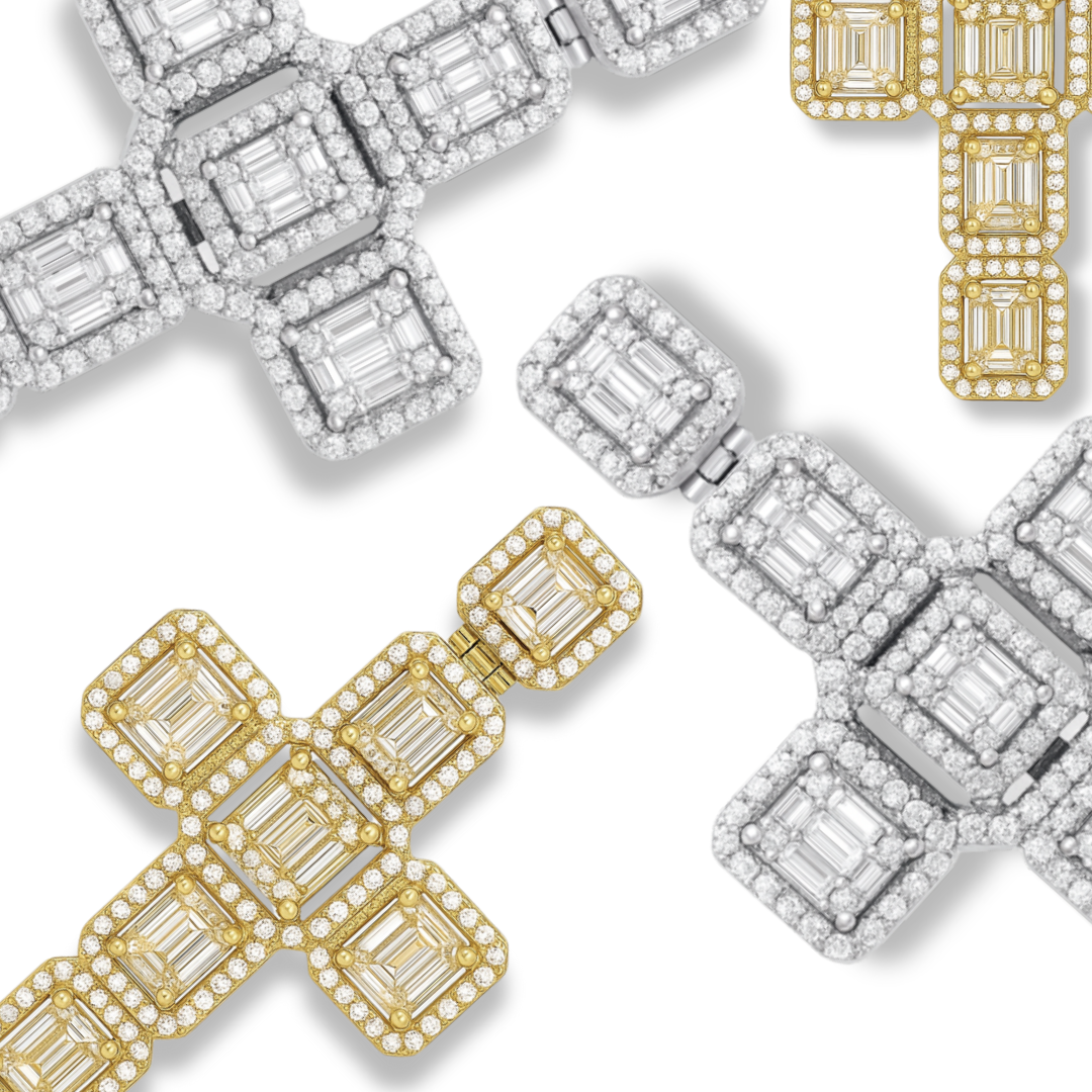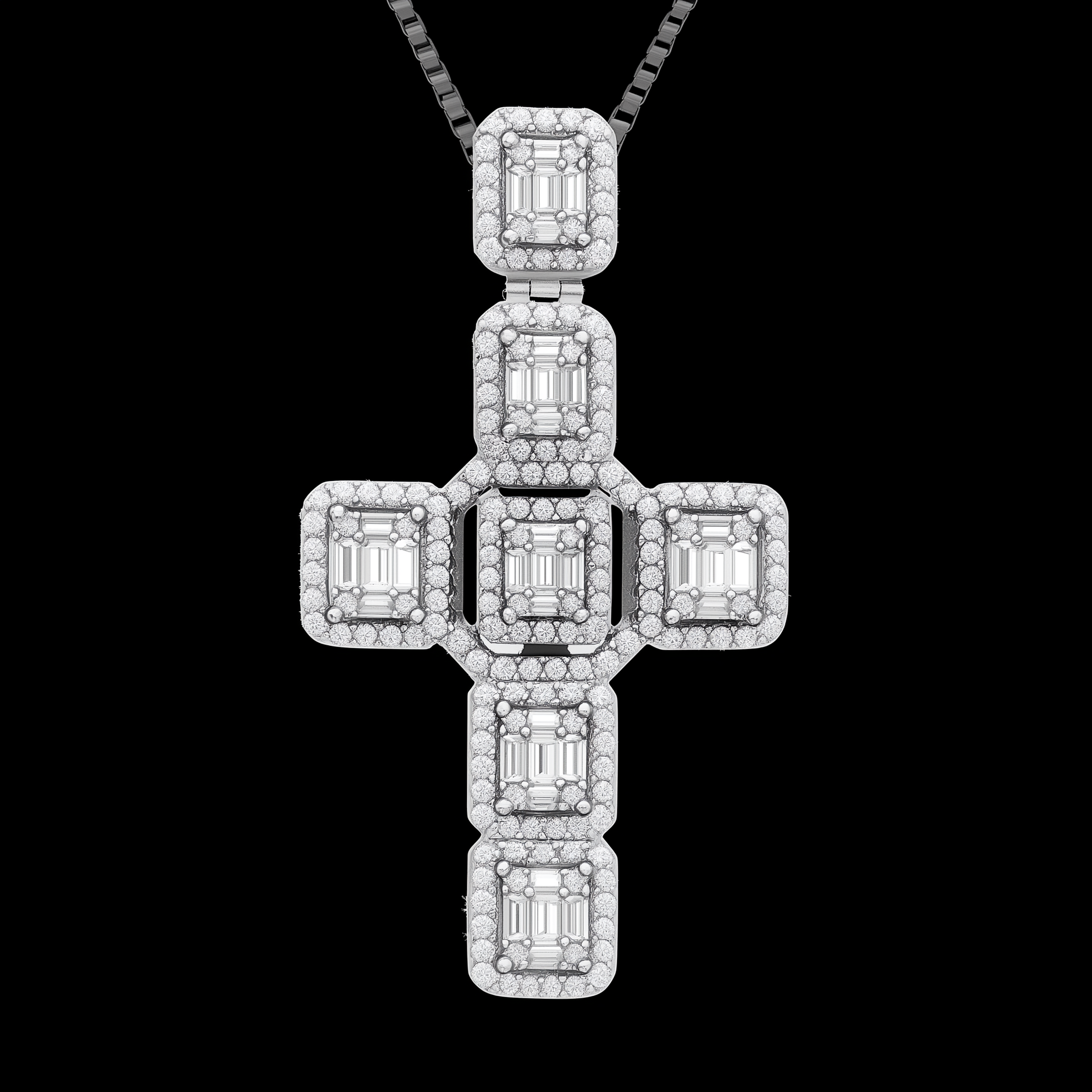 Make a bold statement with this 2" large baguette cross pendant, crafted from solid 925 sterling silver for durability and shine. Featuring high-quality cubic zirconia (CZ) baguette stones, it adds a touch of modern elegance to a classic design.