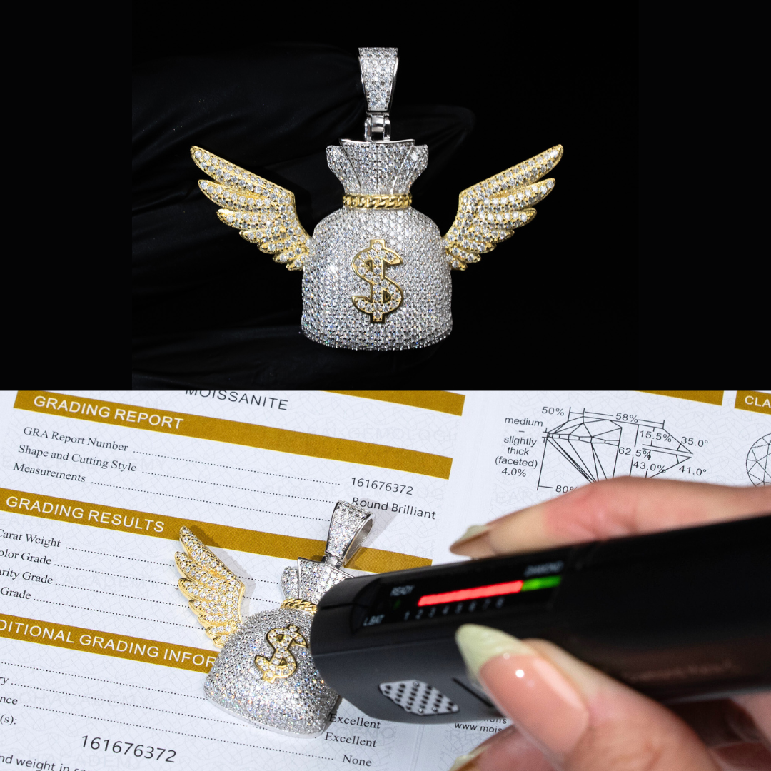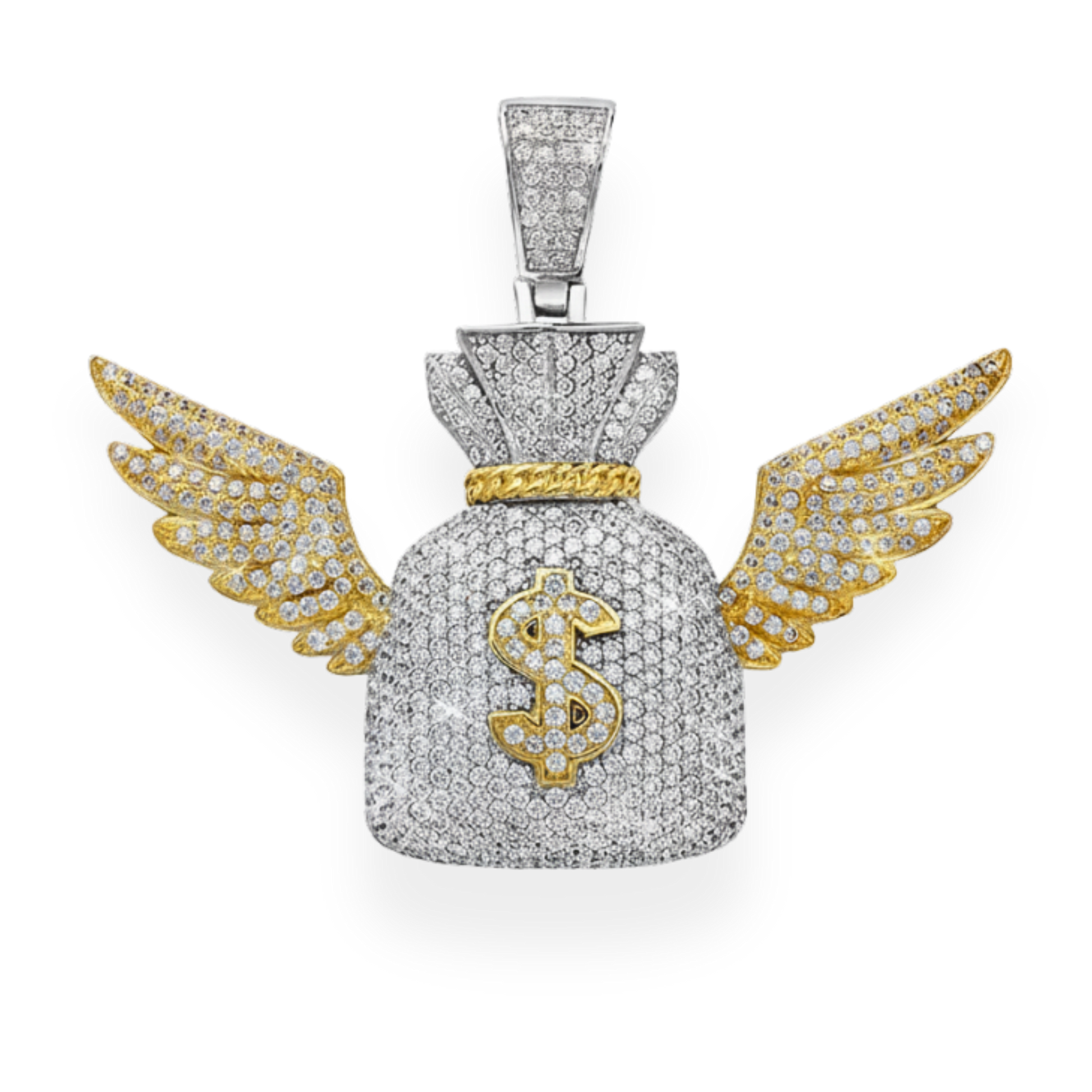 Moissanite Two Tone Money Bag Pendant 925 Sterling Silver