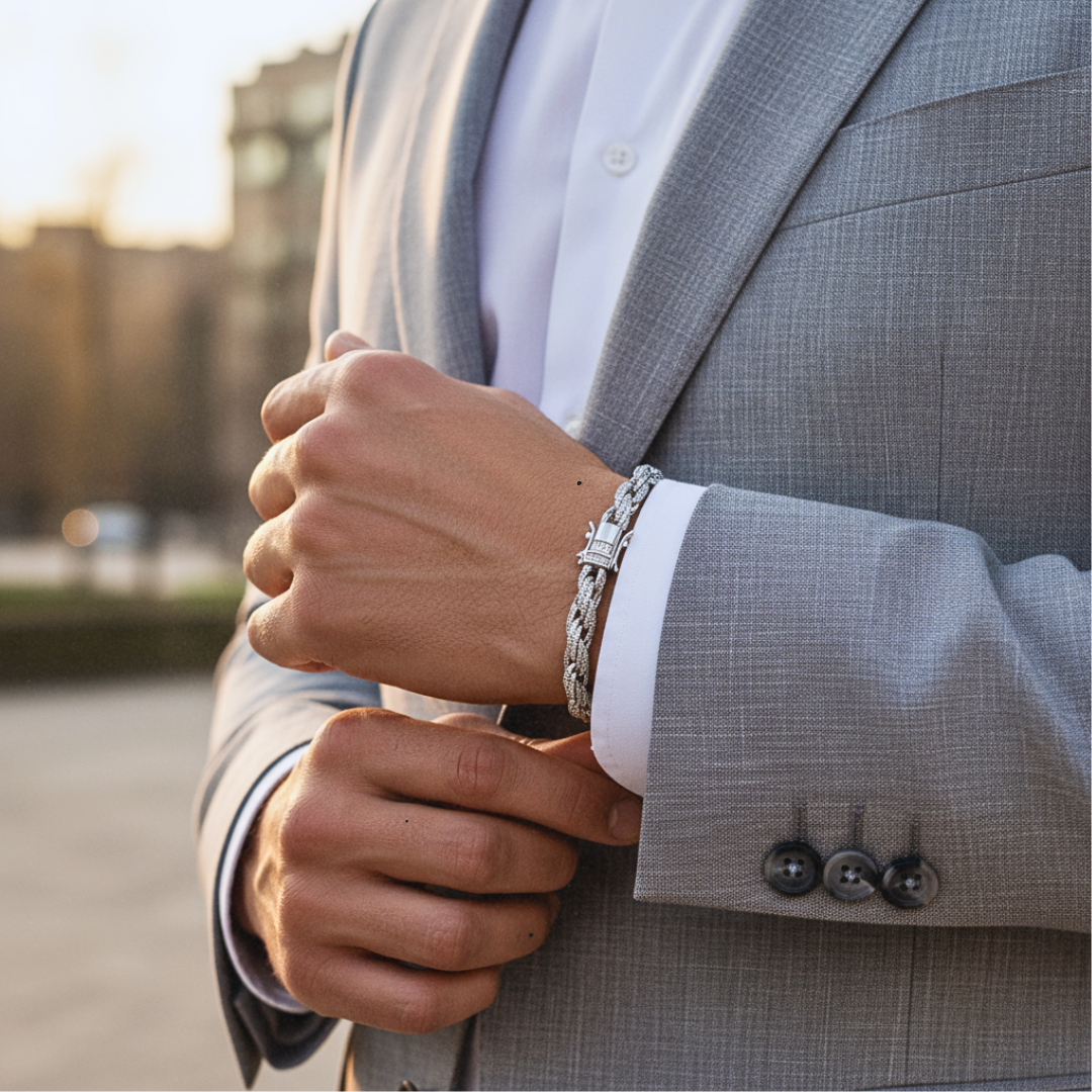 Experience next-level shine with this fully iced rope bracelet, set with genuine VVS D Color moissanite stones. What sets rope chains apart is their 3D design stones cover all sides, giving it a complete iced look.
