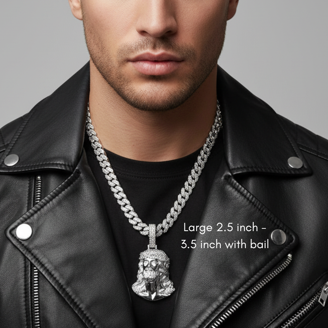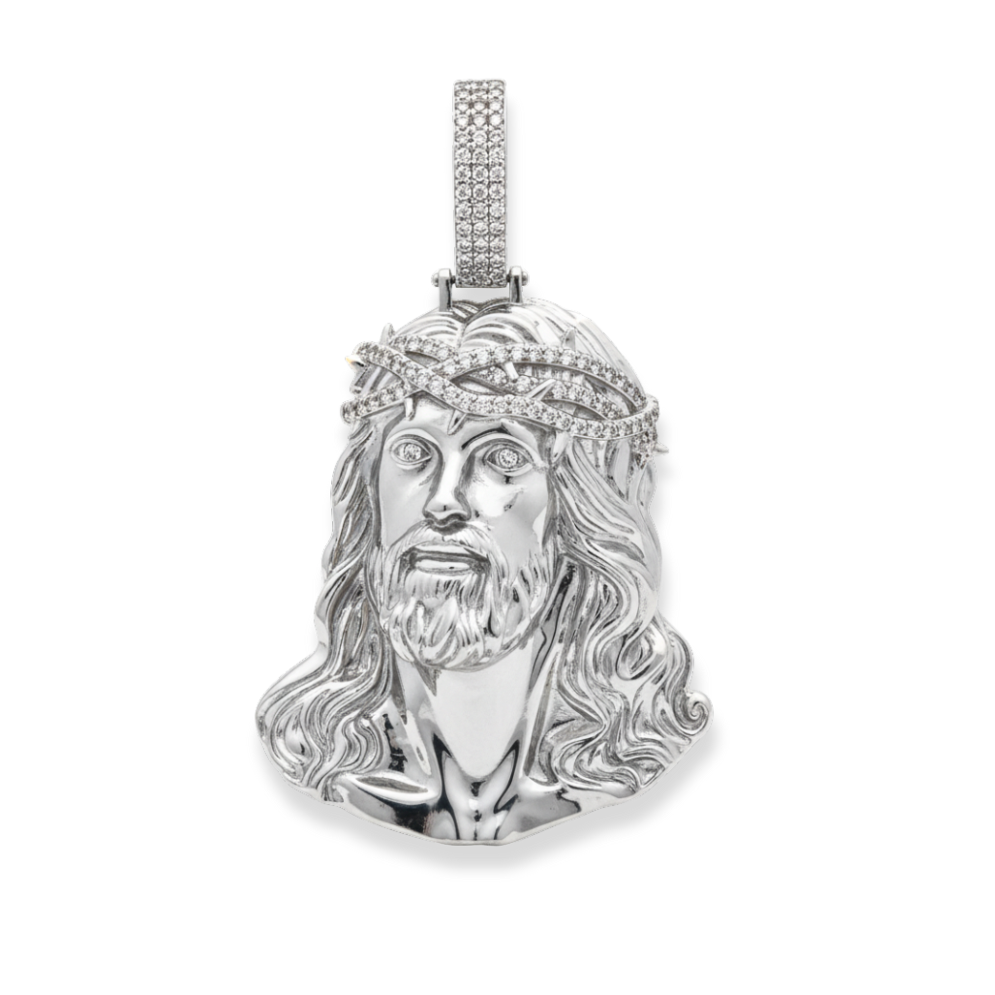 Moissanite Jesus Head Piece Pendant - Solid 925 Sterling Silver