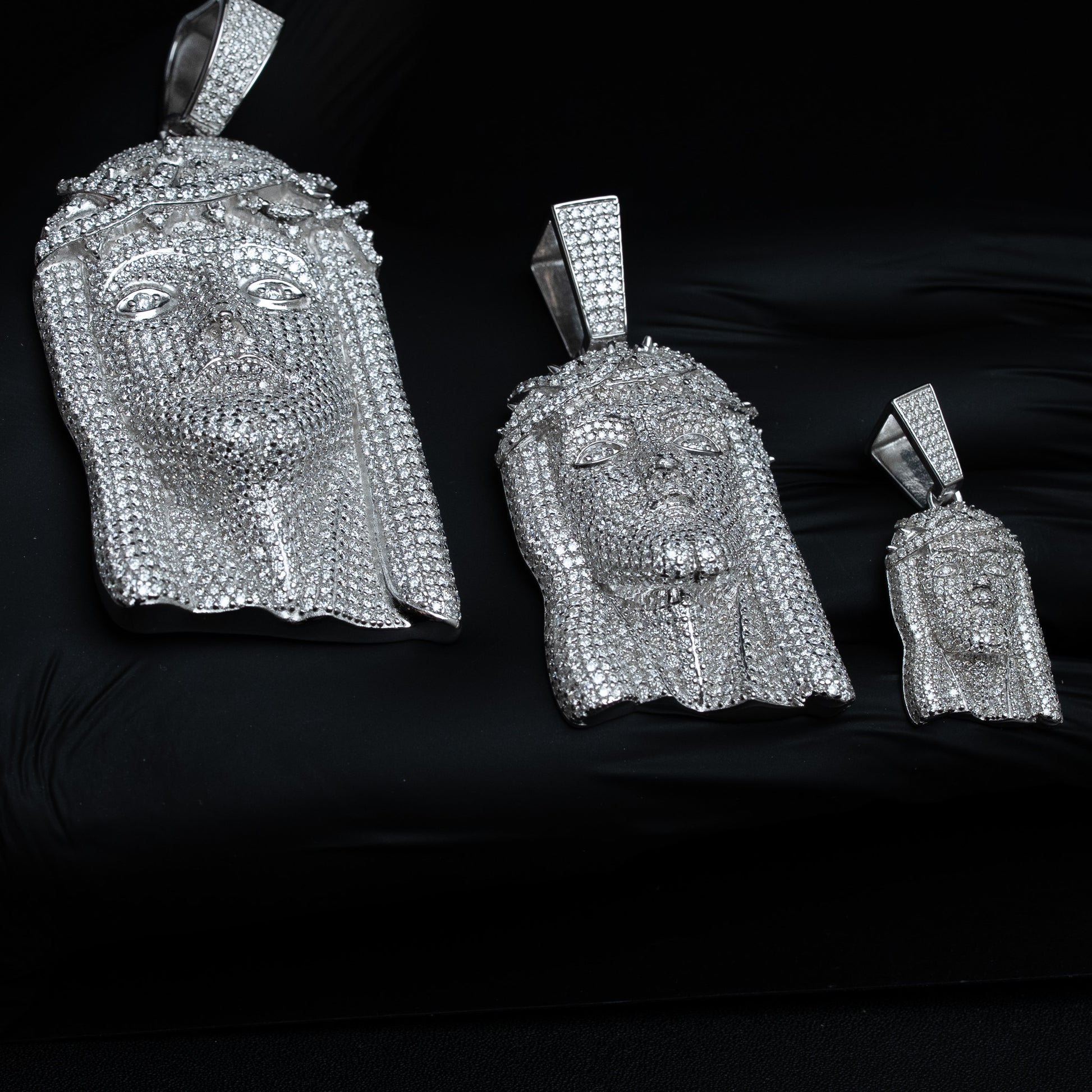 Fully iced out Jesus piece pendants from small, medium and large