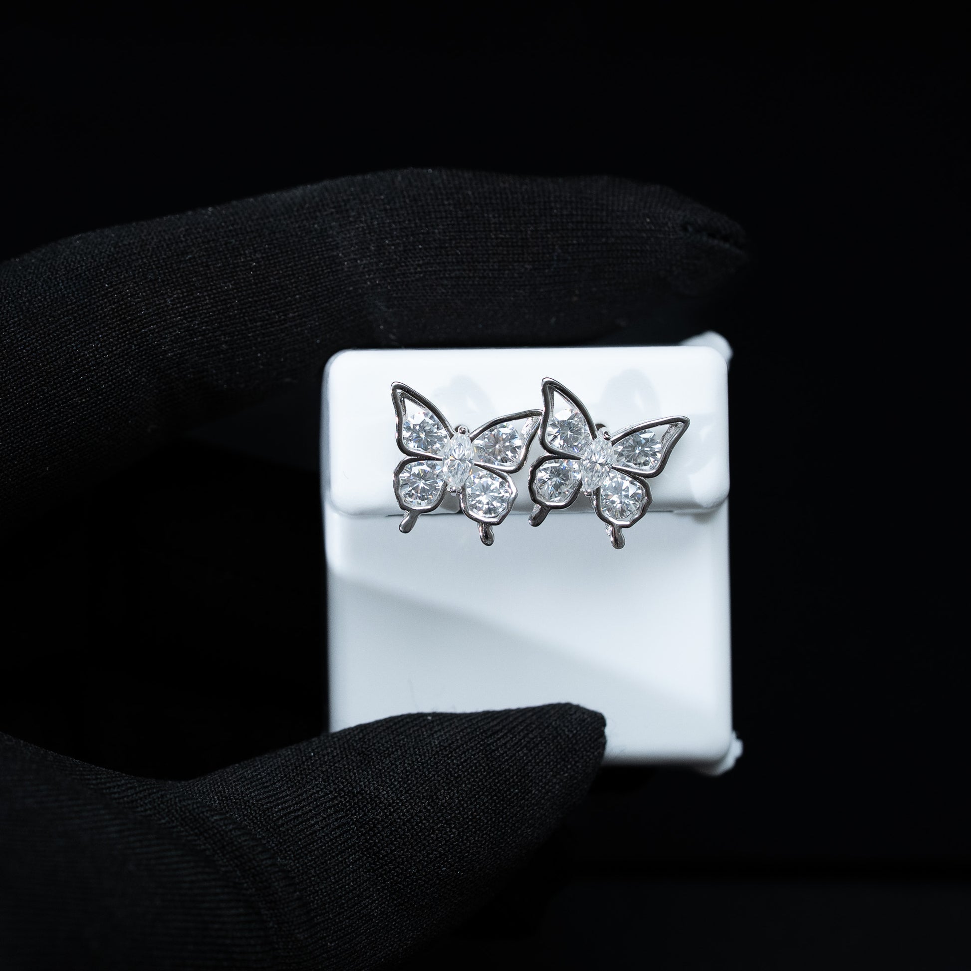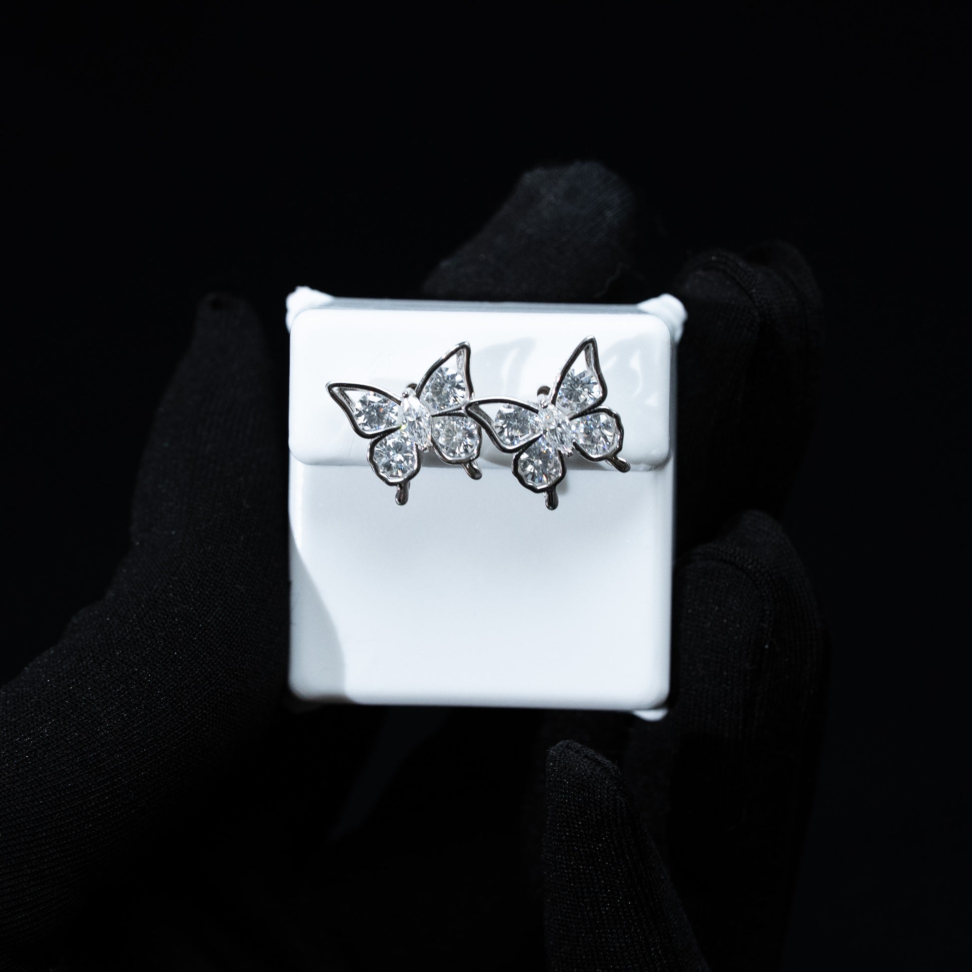 Moissanite Masquise & Round Cut Butterfly Stud Earrings 925 Sterling Silver
