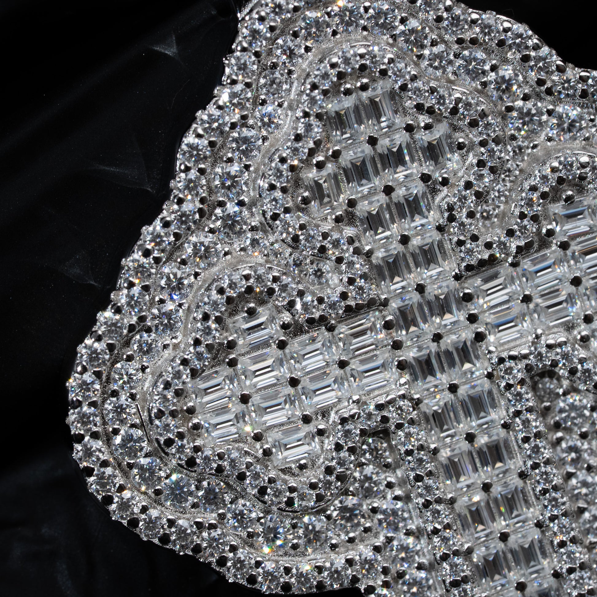 Crafted with precision and spiritual symbolism, this Moissanite Iced Catholic Cross Pendant features a stunning combination of round and baguette-cut VVS1 D color moissanite stones. Its intricate design and radiant sparkle make it a standout religious statement piece for both men and women. Whether worn for faith, fashion, or both, this pendant offers timeless style and brilliance.