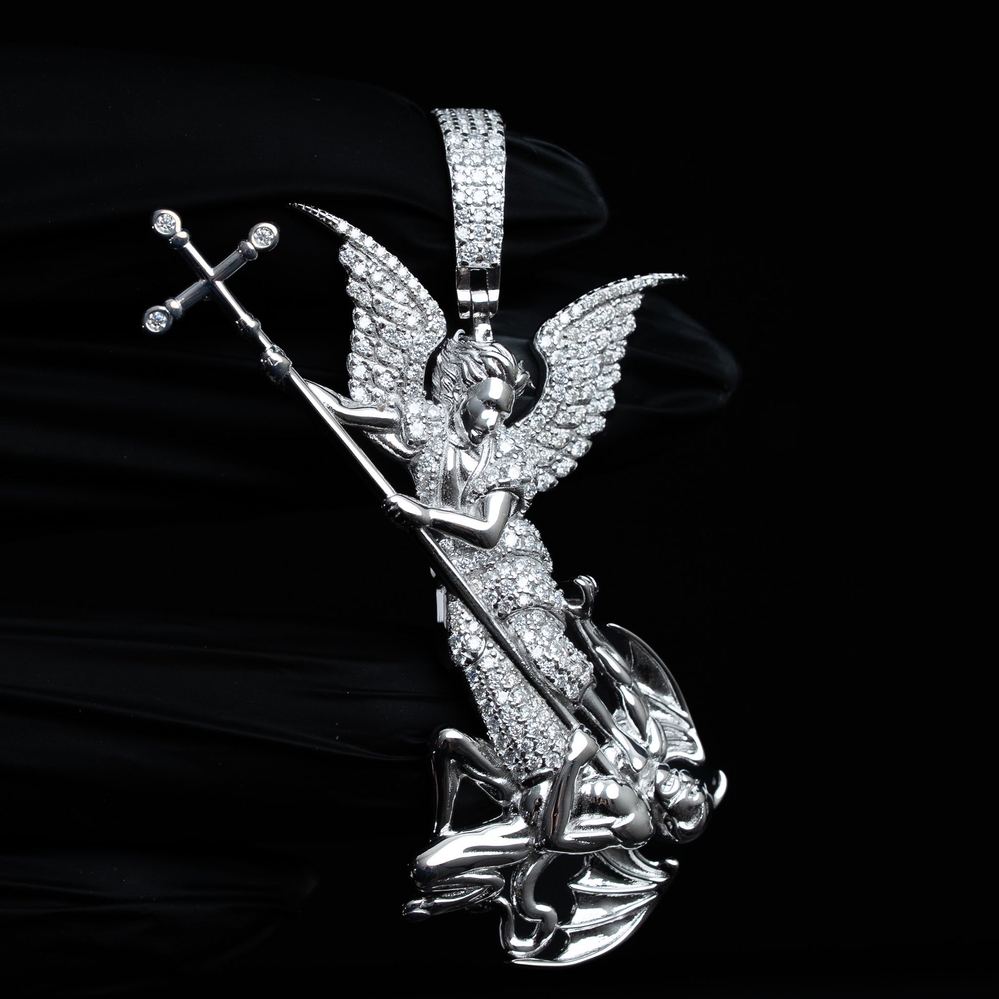 Saint Michael Archangel Pendant Moissanite TCW 1.75 Solid 925 Sterling Silver